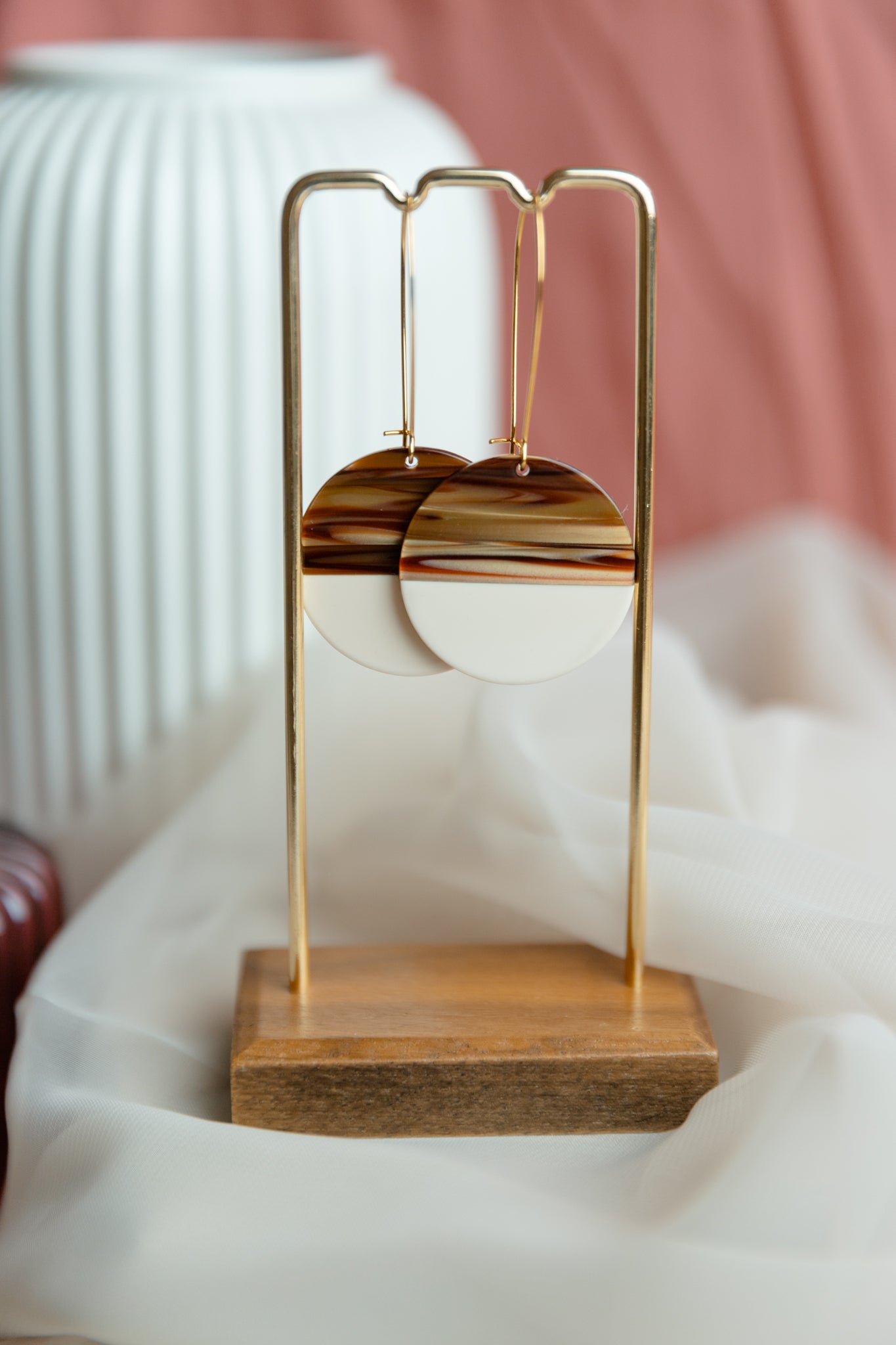 The Campbell Earrings blend minimalism and modern charm in one stylish piece. Featuring a 1.25" acrylic circle suspended gracefully on an elegant kidney-shaped gold hook, these earrings offer understated sophistication with a contemporary flair. Lightweight and comfortable, they gently sway with every movement, adding subtle playfulness to your everyday style. Perfectly versatile, the Campbell Earrings elevate casual outfits or add effortless polish to dressier occasions.
