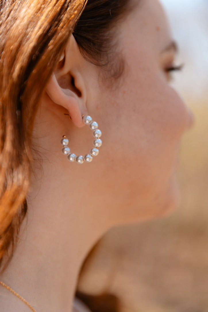 The Kit Earrings are hoops with a touch of timeless pearl sophistication.