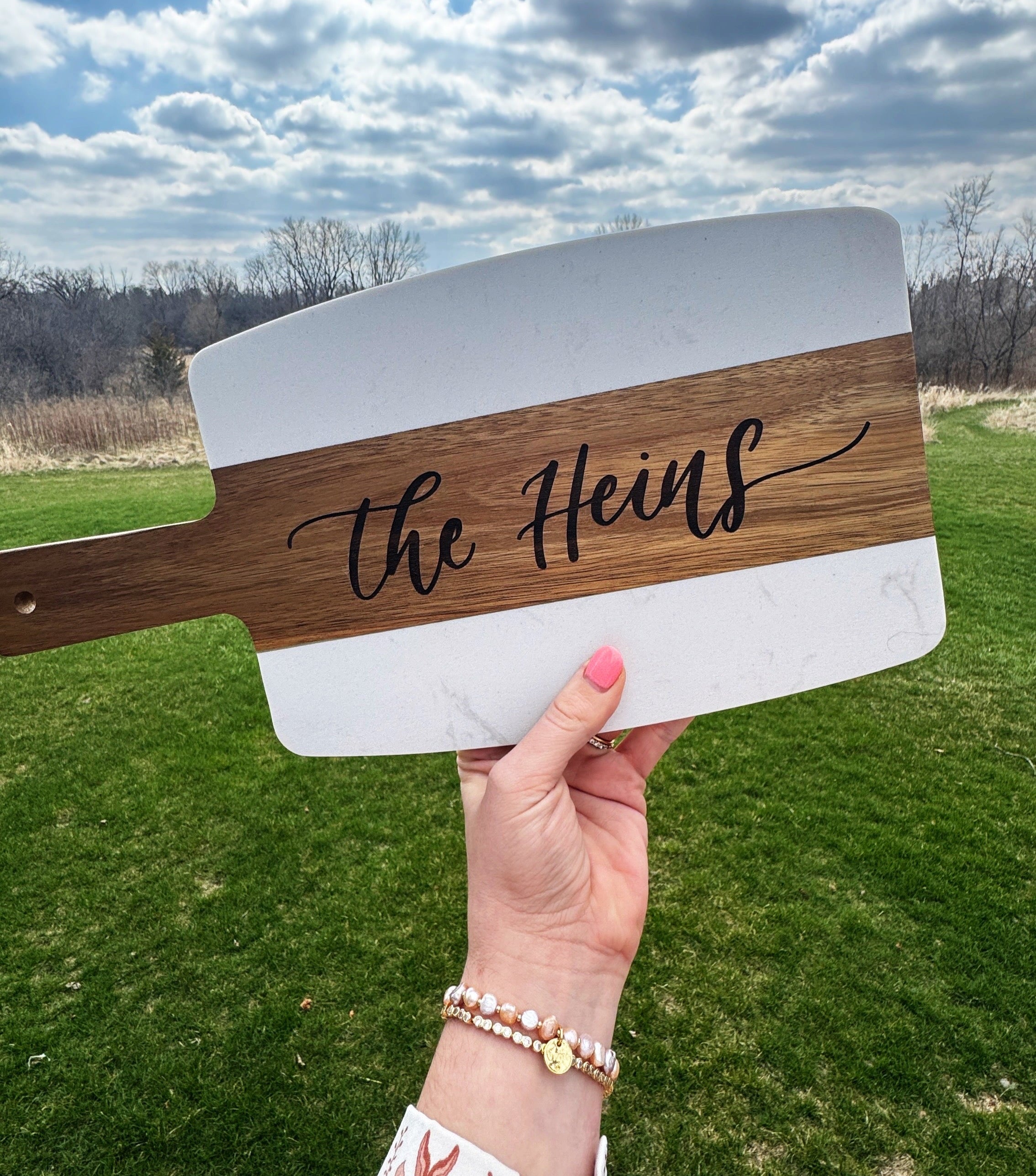 Our customizable engraved cutting boards are the perfect blend of function and sentiment. Whether you’re gifting a new homeowner, celebrating a wedding, or just treating your own kitchen, these handmade boards bring a personal touch to everyday moments. Choose to include matching knives for the full set.