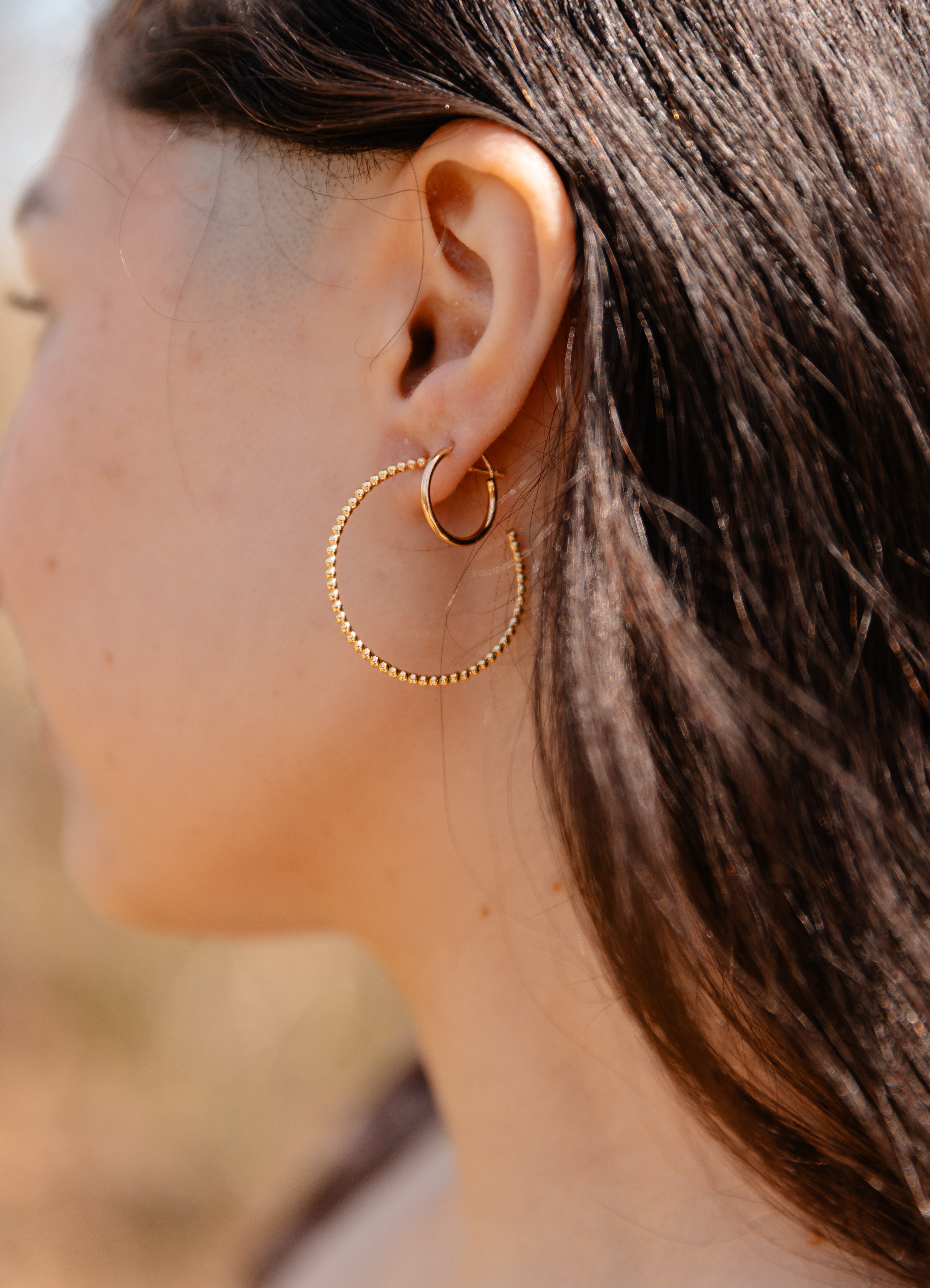 - Stack-Friendly: Pair with studs or smaller hoops.