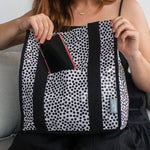 Keep organized wherever you go with this market tote bag. Perfect for a stroll around the markets, a quick dash for groceries or pack it full of picnic essentials. With comfy, thick straps and a quick-access pocket at the front, it's versatile as a handheld tote or over the shoulder. This bag is made from recycled plastic bottles. We have also added a pocket on the front to store your keys & phone. The wide handles make it easy to carry when full.