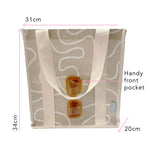 Keep organized wherever you go with this market tote bag. Perfect for a stroll around the markets, a quick dash for groceries or pack it full of picnic essentials. With comfy, thick straps and a quick-access pocket at the front, it's versatile as a handheld tote or over the shoulder. This bag is made from recycled plastic bottles. We have also added a pocket on the front to store your keys & phone. The wide handles make it easy to carry when full.
