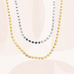 The Cosmo Necklace is a layering essential with just the right amount of detail. Designed with a 3mm flat beaded pattern, this chain brings subtle texture that elevates any necklace stack. Available in both gold and silver finishes, Cosmo is lightweight, versatile, and made to shine whether you’re styling it solo or pairing it with your favorite pendants. For the perfect stack, choose a length about 2" shorter than the pendant necklace you want to layer it with.