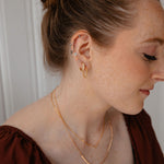 If Eleni and Danielle had a golden little sister, it’d be Azalia. These gold-filled huggies combine the fun shape of Eleni with the texture of Danielle, creating the ultimate everyday earring. With a beaded design that adds just enough detail, Azalia is the effortlessly cool pair you’ll reach for on repeat.
