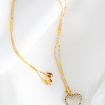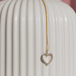 The Renee Necklace is a symbol of love and elegance. Featuring a delicate open heart pendant adorned with micro pave cubic zirconia stones, this necklace captures light beautifully, adding subtle sparkle to any outfit. The simple rolo chain enhances the pendant without overpowering it, making this piece both sophisticated and versatile. Whether worn alone or layered, the Renee Necklace is perfect for elevating your everyday style or adding a chic touch to a special occasion.