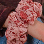The Elsa Scrunchie is the perfect accessory to brighten up your hair routine this season. Made from a dark pink, silky chiffon fabric, this jumbo scrunchie features an adorable maroon floral pattern, adding a festive, cutesy touch to any look. The soft fabric is gentle on your hair, providing a comfortable, secure hold for any hairstyle your heart desires. Whether you're styling a ponytail, bun, or anything in between, the Elsa Scrunchie will complement every outfit with charm and elegance.