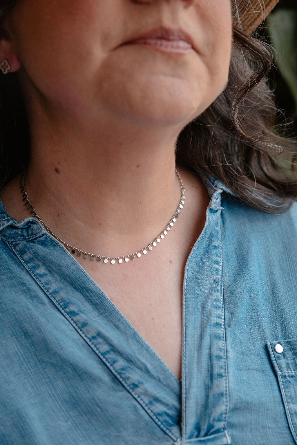 The Moscow Mule Necklace is a playful chain with just the right amount of shine. Designed with tiny gold discs along a dainty chain, it catches the light with every move, adding sparkle and dimension to your look. At 14" with a 4" extender, it’s versatile enough to wear as a choker or slightly longer, making it easy to layer with pendants and other chains.