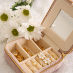 Whether you're jet-setting or just heading home for the weekend, the Weekender Travel Case keeps your jewelry safe, organized, and tangle-free. With necklace hooks, a mirror, and removable dividers to fit chunky earrings or dainty rings, it’s compact enough for your carry-on but chic enough for your vanity.